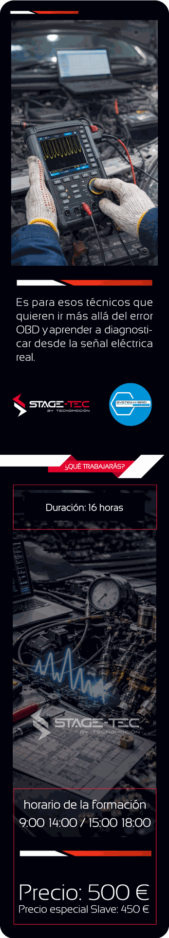 Este curso intensivo de 16 horas está diseñado para proporcionar al profesional del taller una comprensión sólida y práctica del uso del osciloscopio en sistemas de gestión de motor.